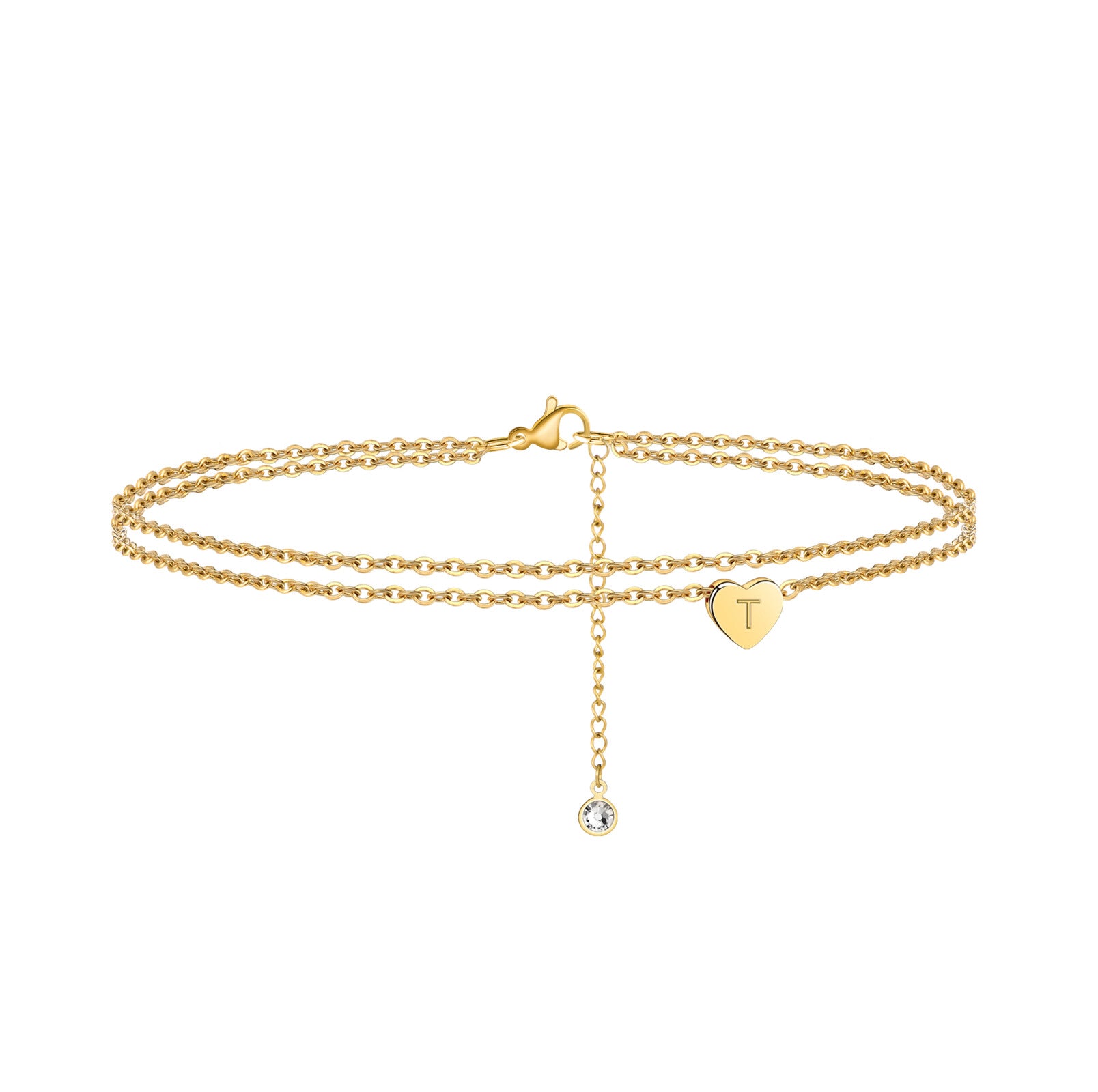 This golden double-layer heart-shaped letter ankle chain is specially designed for women. The pendant can be engraved with the initial of your name. The edges are smooth and round, not irritating to the skin. The golden ankle chain is a versatile must-have for the summer. It pairs well with flip-flops, or thin-soled sandals. As a birthday gift, it conveys the profound meaning of "friendship is like gold and never fades". The heart-shaped pendant symbolizes love, the letter pendant represents memories. Giving it to a friend is a romantic declaration, and giving it to oneself is a gentle statement. Choosing this ankle chain is not just about selecting an accessory; it's about customizing a romantic contract for your feet. Order it now to crown your exclusive love!